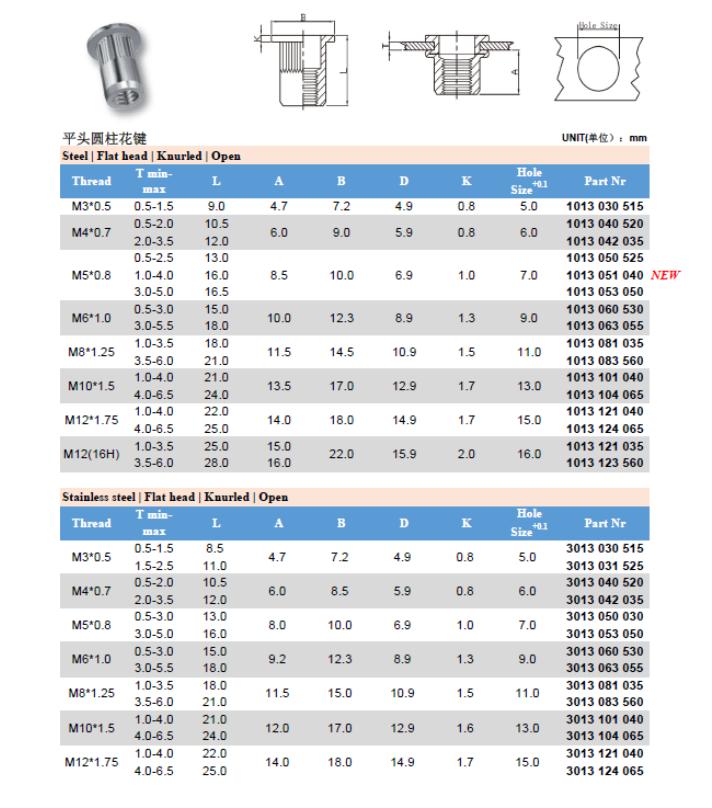 钢制平头带滚花铆螺母 (英制/美制)