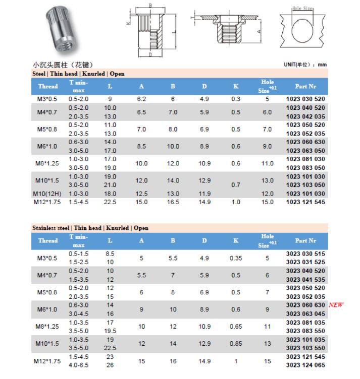 钢制平头带滚花铆螺母 (英制/美制)