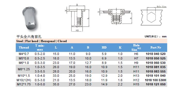 半六角盲孔平头拉铆螺母