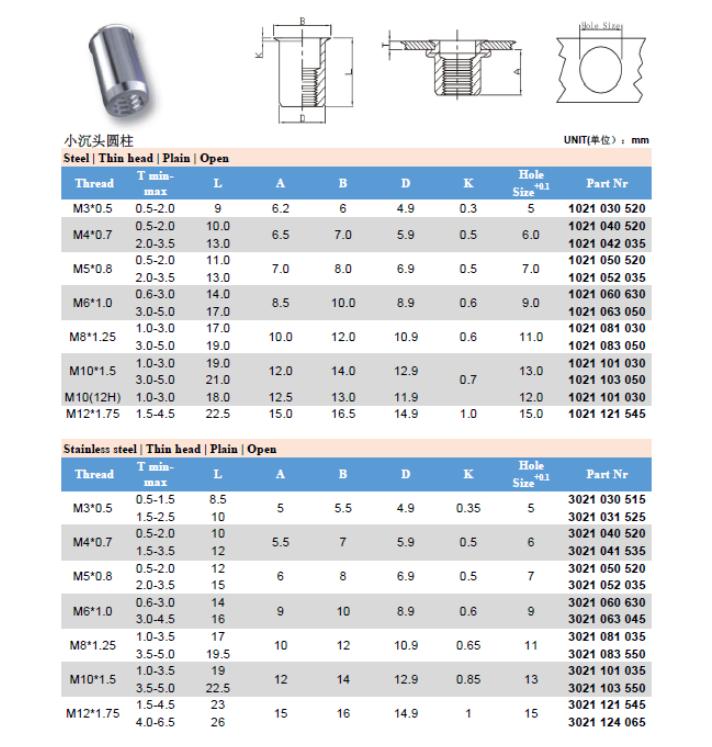 平头铆螺柱 (拉铆螺钉) [原 YJT-1008]