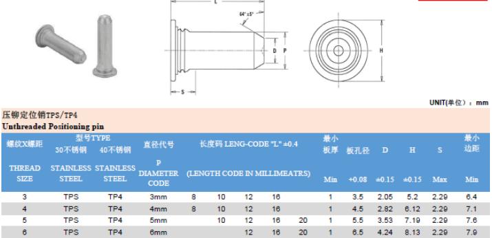 Self-Clinching TPS TP4 定位导向销